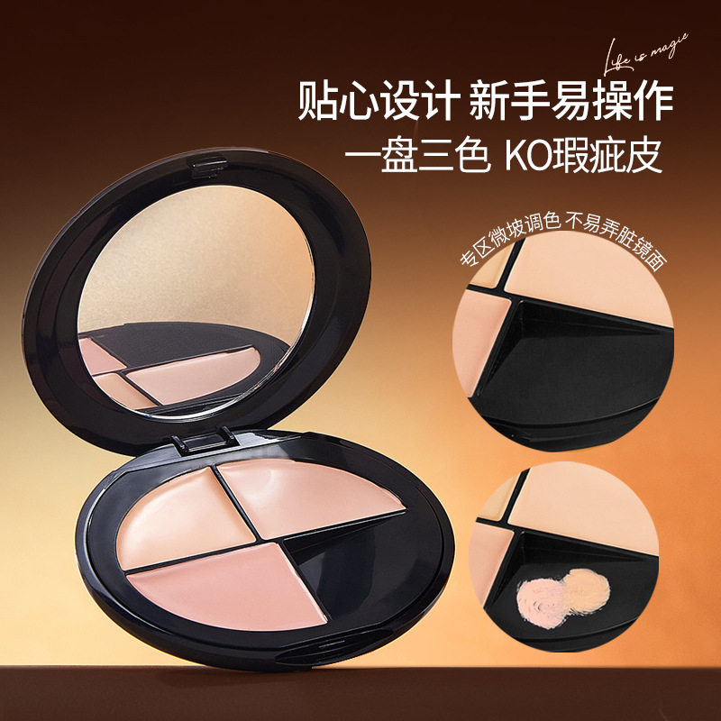 三色遮瑕盘膏遮盖痘印斑点黑眼圈提亮泪沟面部遮瑕 拍一发三