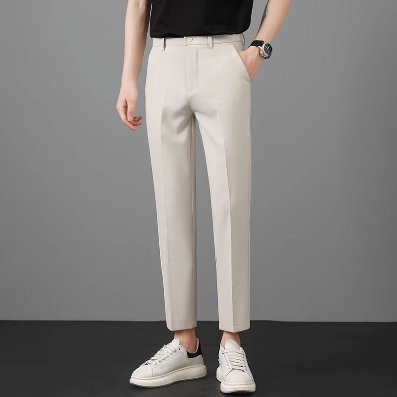 裤 九分裤 冰丝小脚直筒裤 薄款 修身 高级感男西装 韩版 夏季 英伦休闲裤