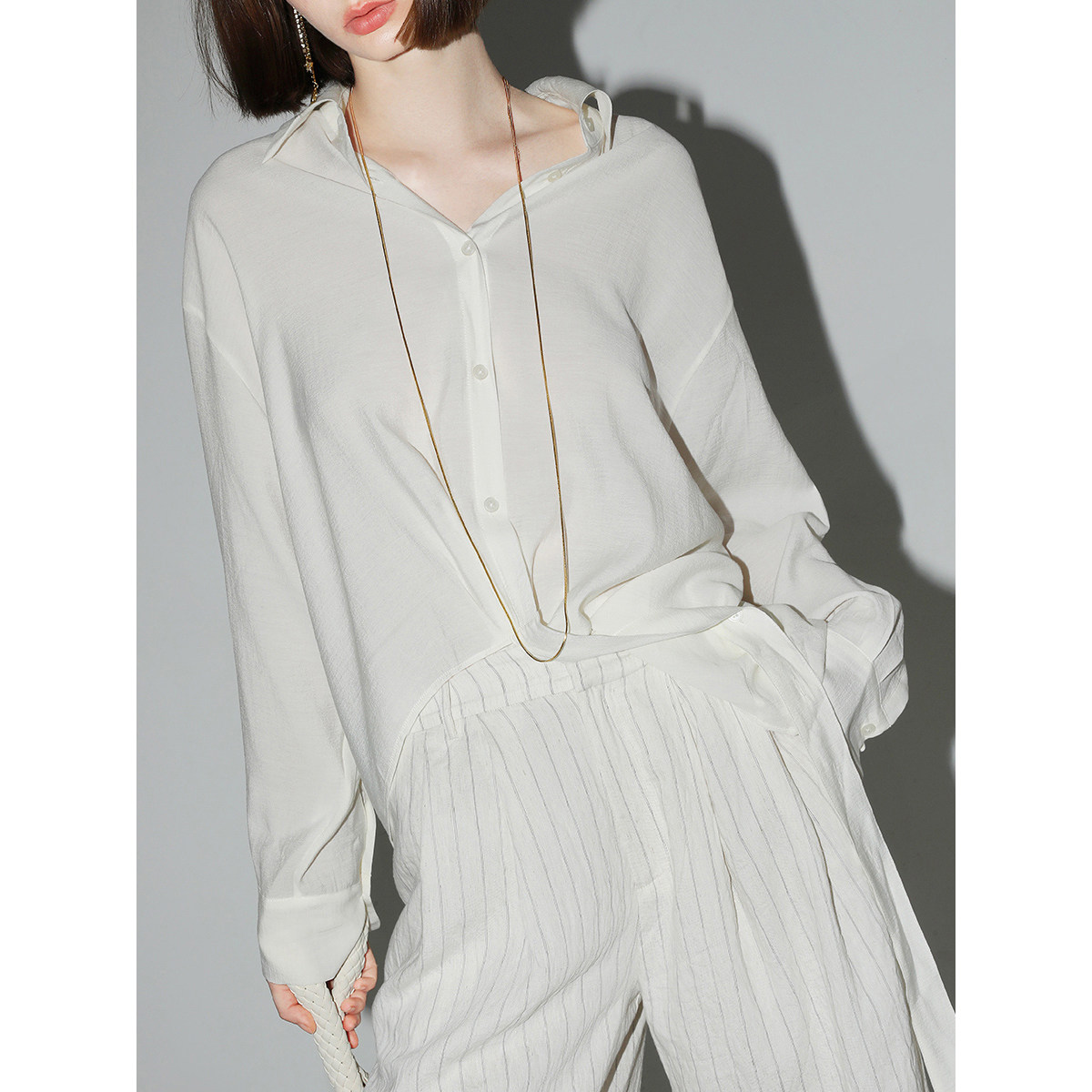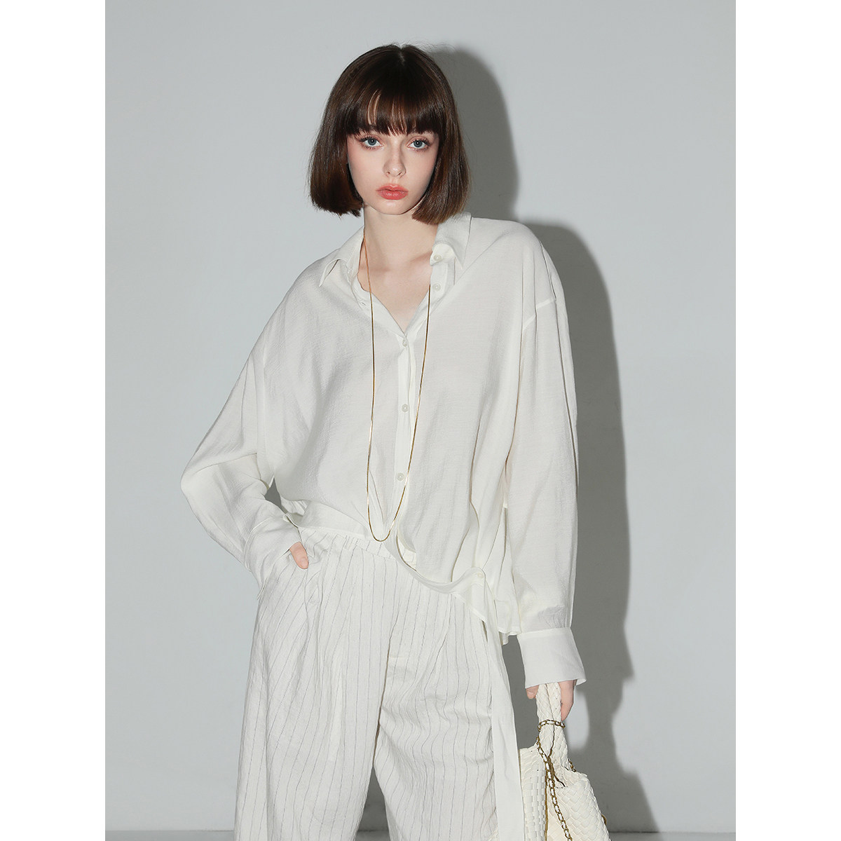 COCOBELLA设计感捏褶飘带衬衫 女26春灵动优雅气质通勤衬衣SR3067