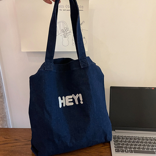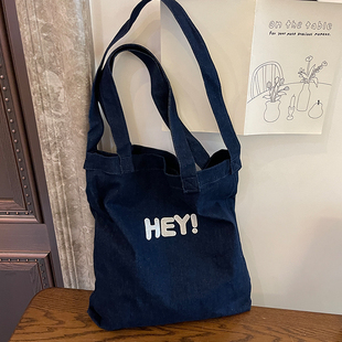 慵懒风大容量帆布包女2025新款 学生上课电脑包单肩手提托特包 时尚