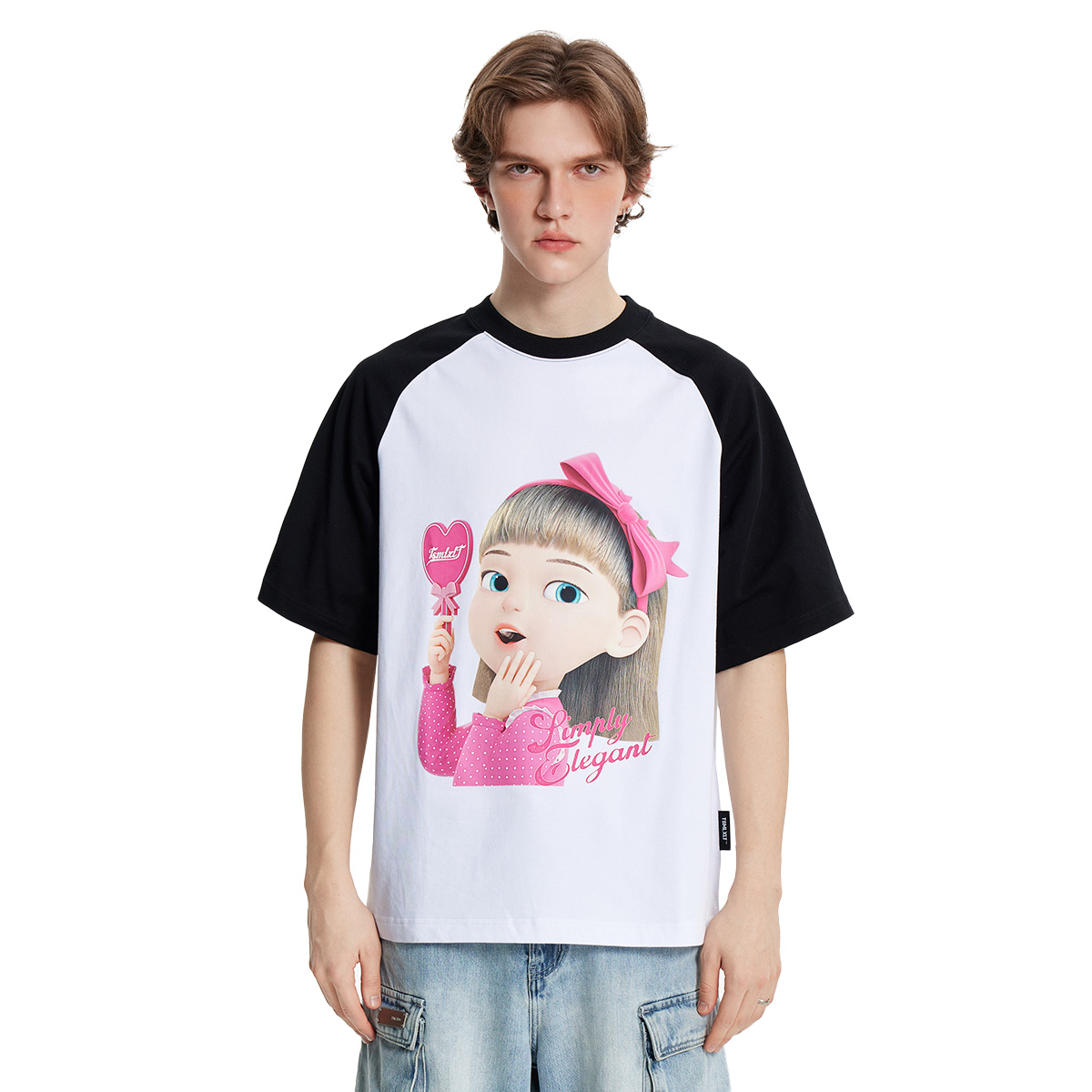 男 纯棉休闲百搭短袖 TSMLXLT爱美女孩印花撞色T恤女纯棉25夏季 新款