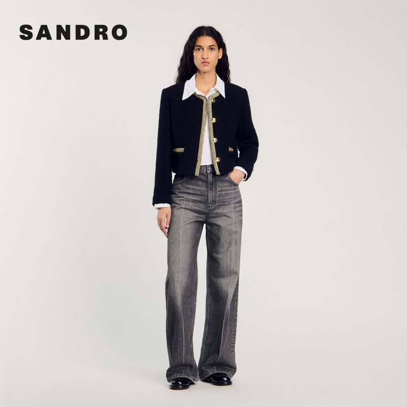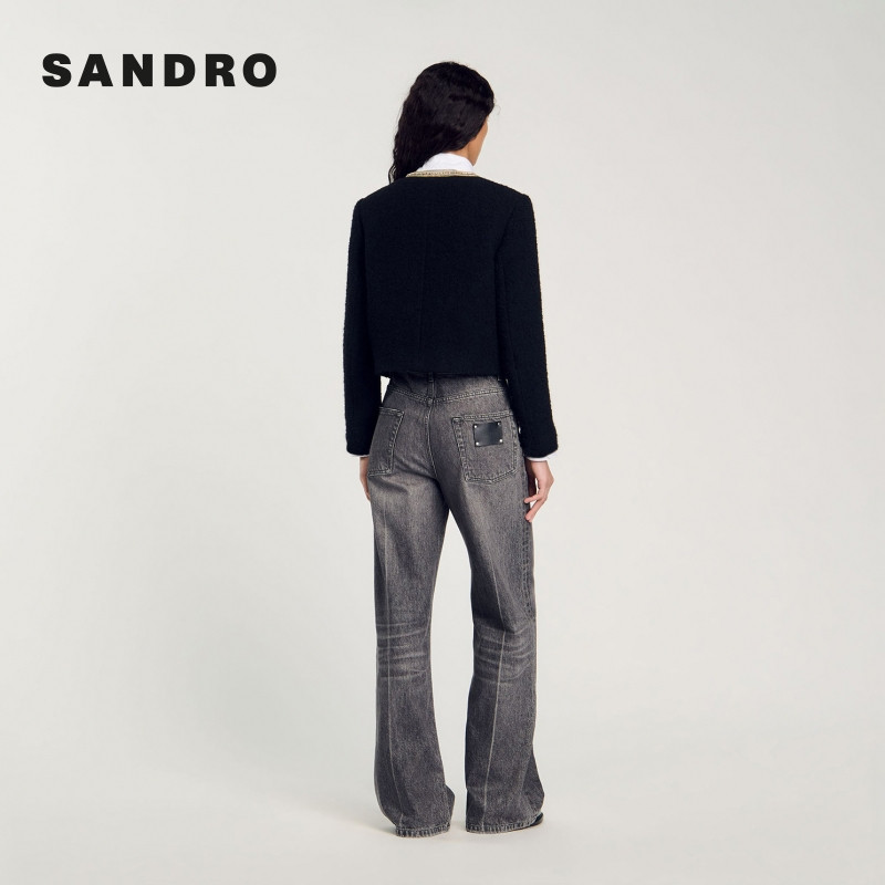 外套上衣 优雅气质黑色仿钻领口门襟竖排扣短款 SANDRO秋冬女装 法式