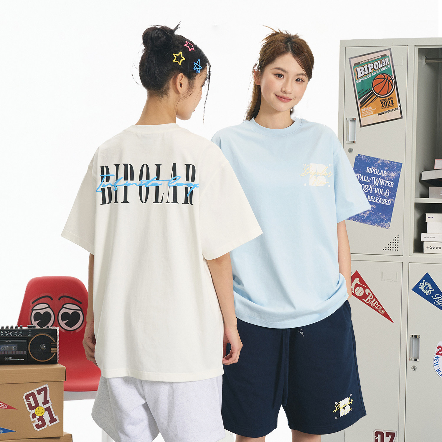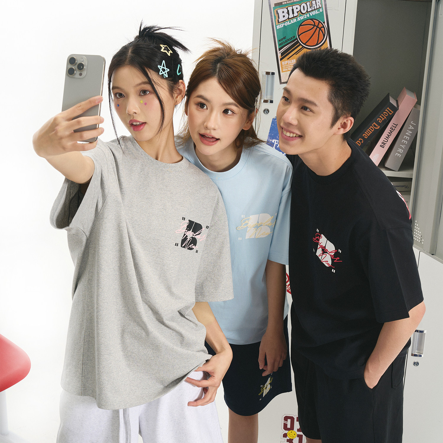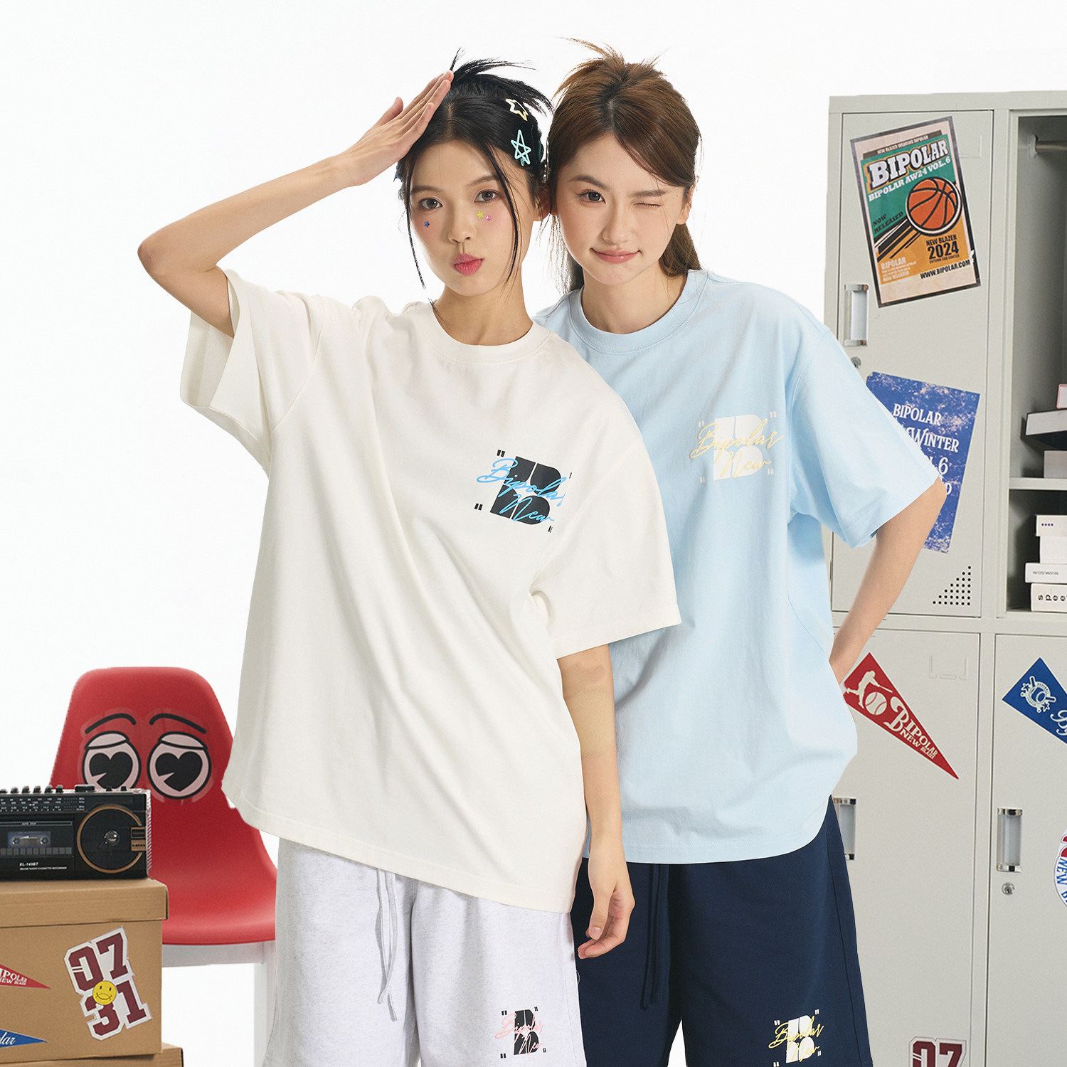 BIPOLAR手写字发泡短袖 潮牌圆领上衣男女 T恤国潮印花纯棉宽松美式