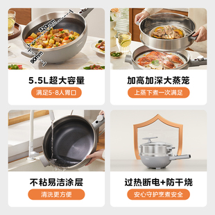 美 不粘锅家用大容量电火锅 不花芯电炒锅多功能炒菜锅炒锅一体式
