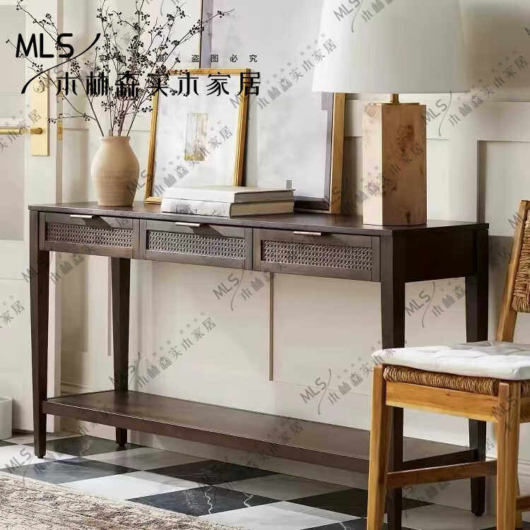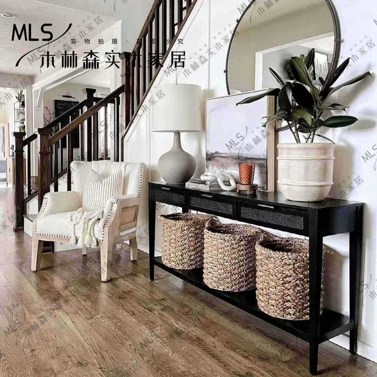 意式 轻奢创意实木玄关桌客厅端景台条案长条几过道柜置物台窄案台