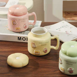 卡通陶瓷镜面杯高颜值马克杯带盖家居大容量水杯办公室茶杯咖啡杯