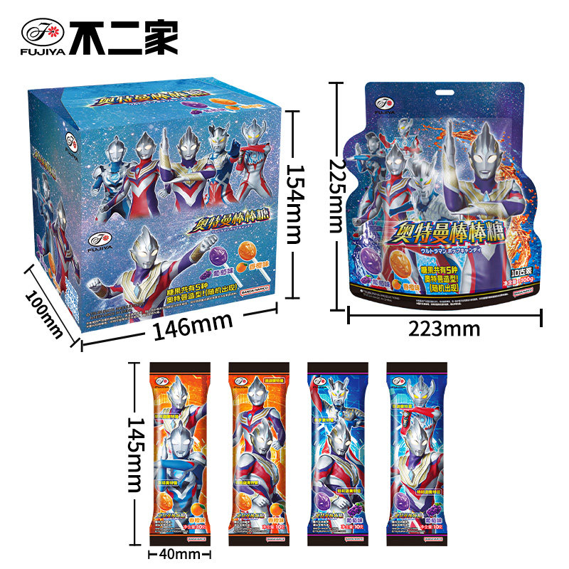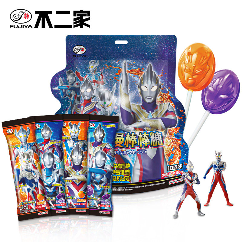 不二家奥特曼棒棒糖迪迦赛罗图案水果糖学生儿童生日创意礼物零食