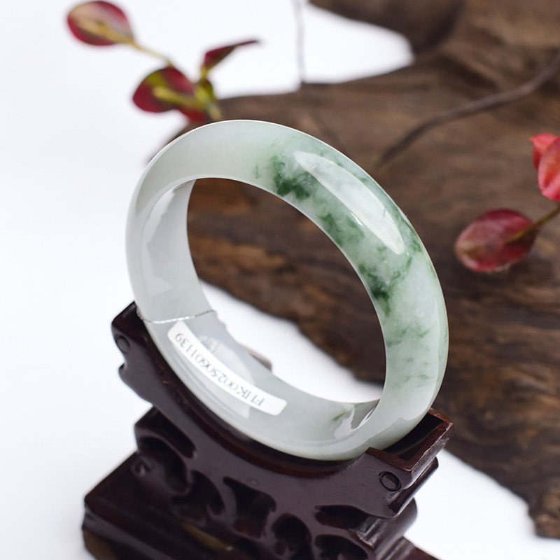 X26999果敢翡翠58.9mm 玉手镯 飘花天然缅甸A货翡翠手镯