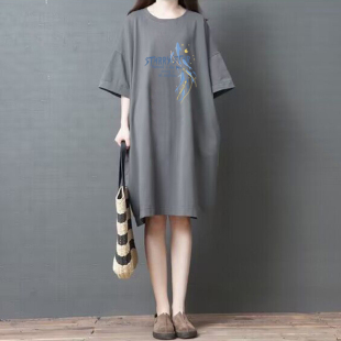 百搭上衣裙夏 t恤女宽松时尚 外贸出口清仓100%纯棉气质短袖 中长款