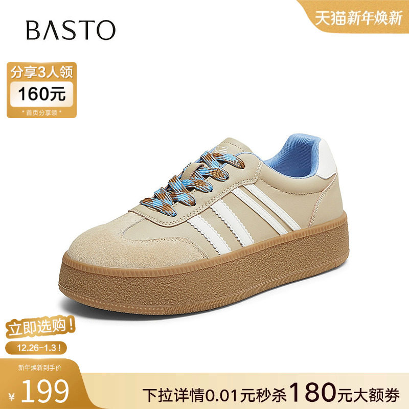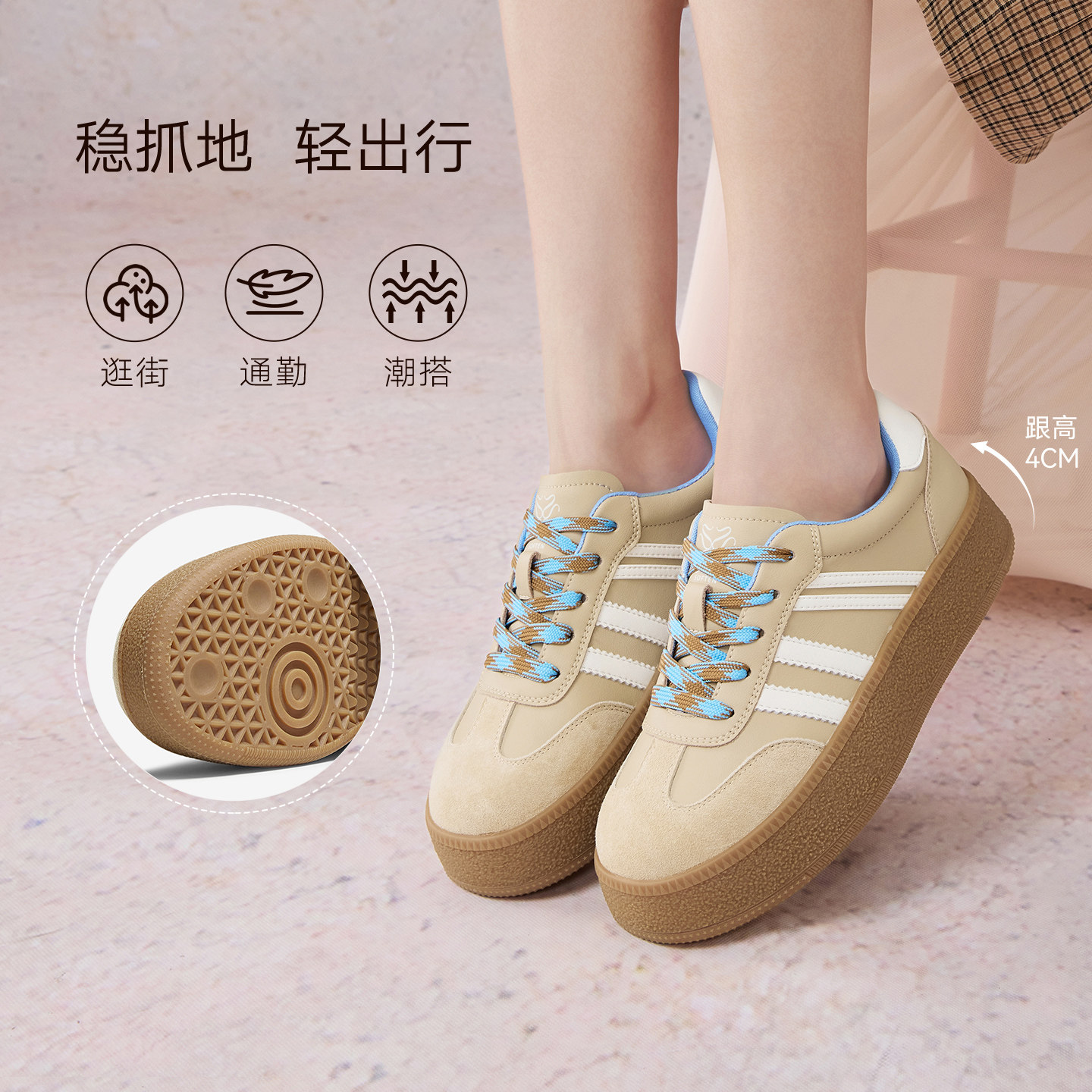 休闲板鞋 新增高鞋 A6N4DAM5预 百丽板栗厚底红色德训鞋 张凌赫同款