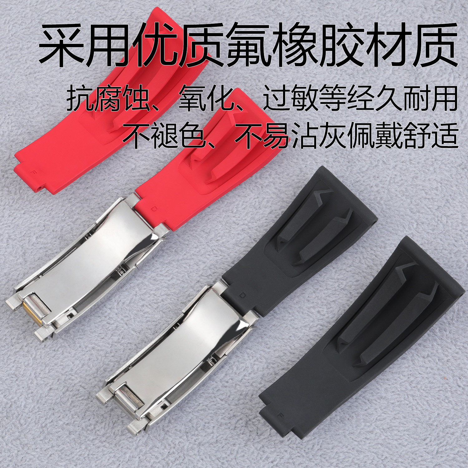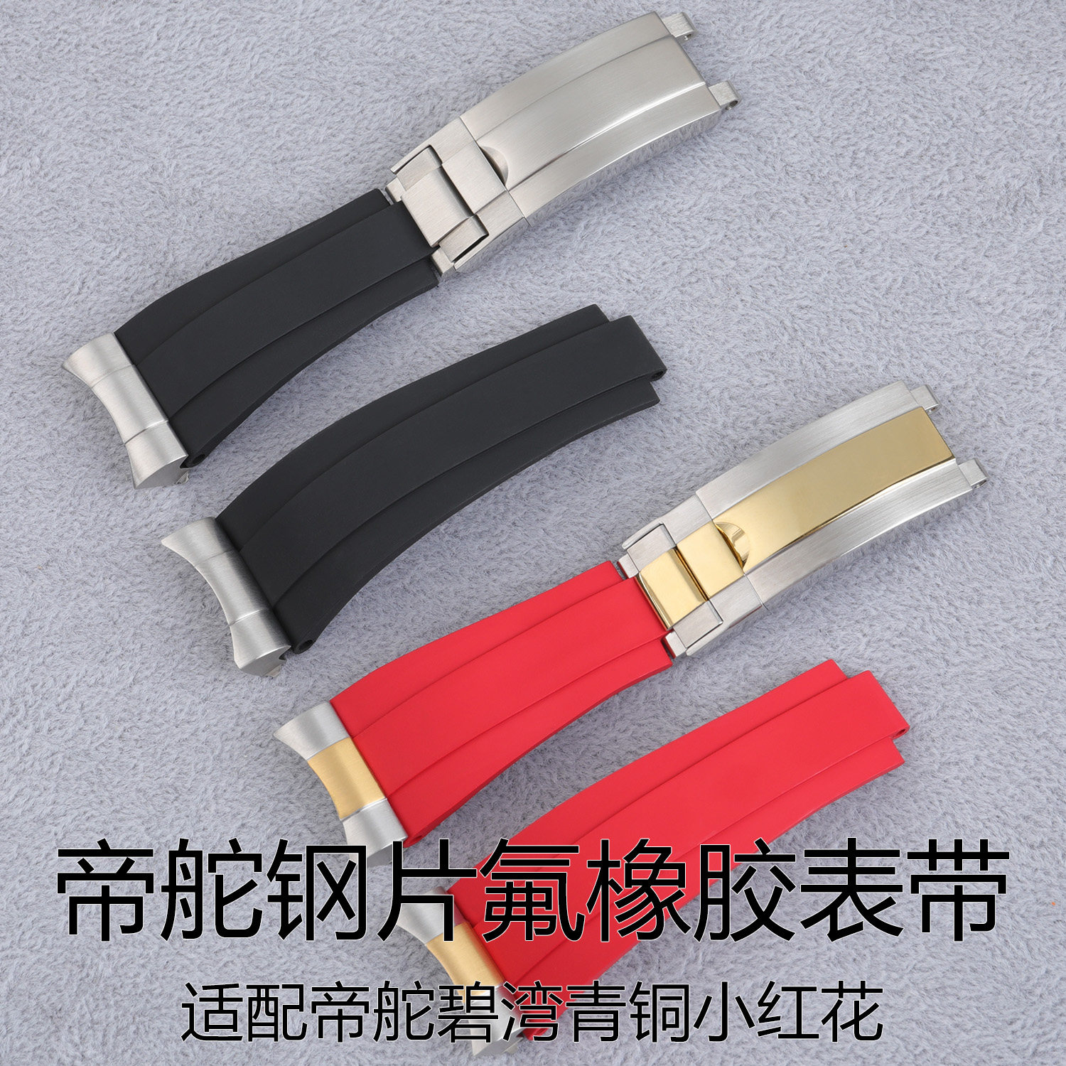钢片氟橡胶适用帝舵陀启程碧湾青铜小红花蓝黑怪兽男款 手表带22MM