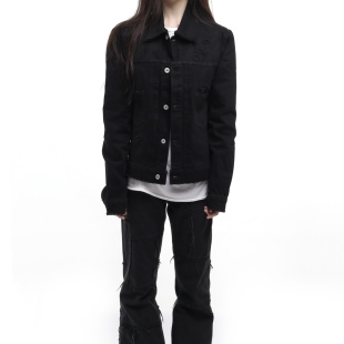 AMBSOM 水洗做旧破坏糜烂Cleanfit牛仔夹克vintage外套男女同款