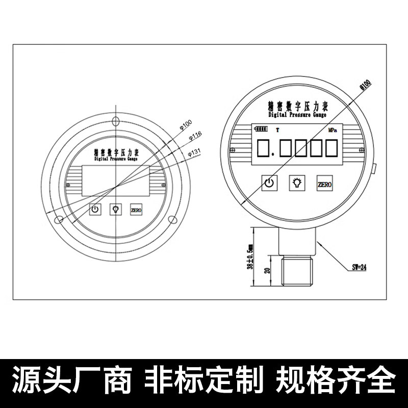 YB100ZT高精度数显压力表 精密数字压力计真空数显压力表 面板安装