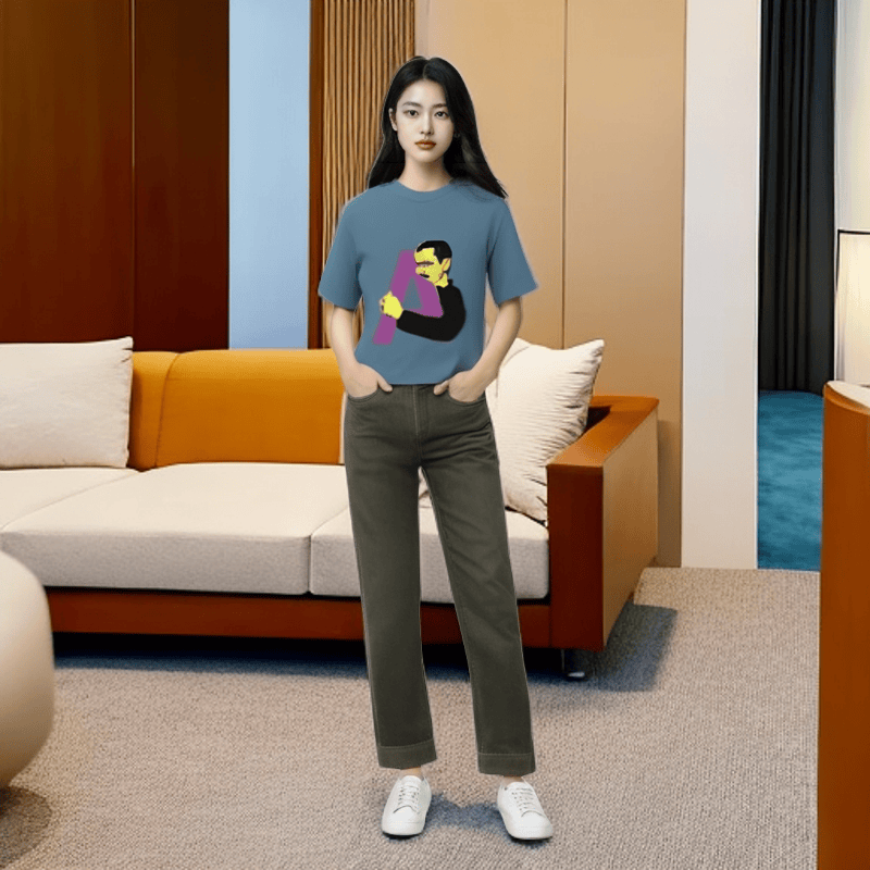 男女同款 T恤 蓝色 印花直筒短袖 UNDERCOVER人物法式