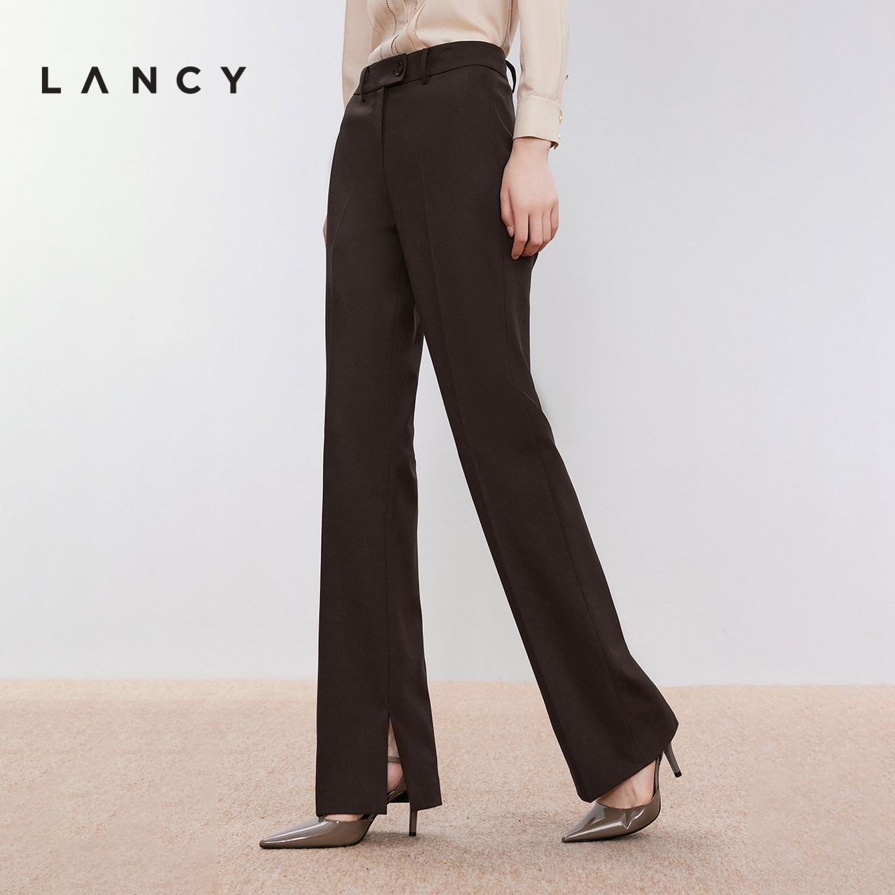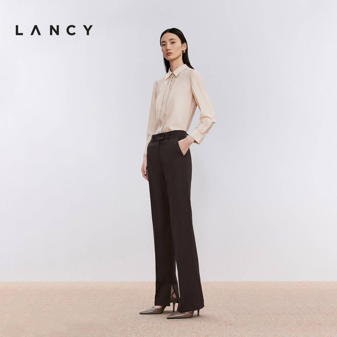 朗姿2024冬季 女绵羊毛通勤商务长裤 新款 裤 复古通勤直筒西装 LANCY