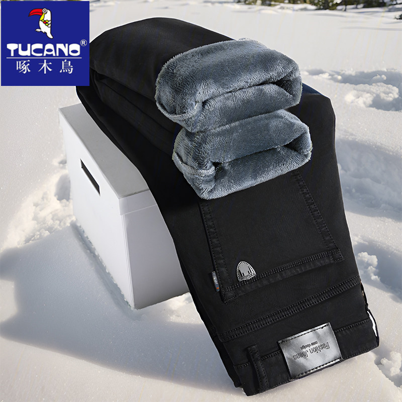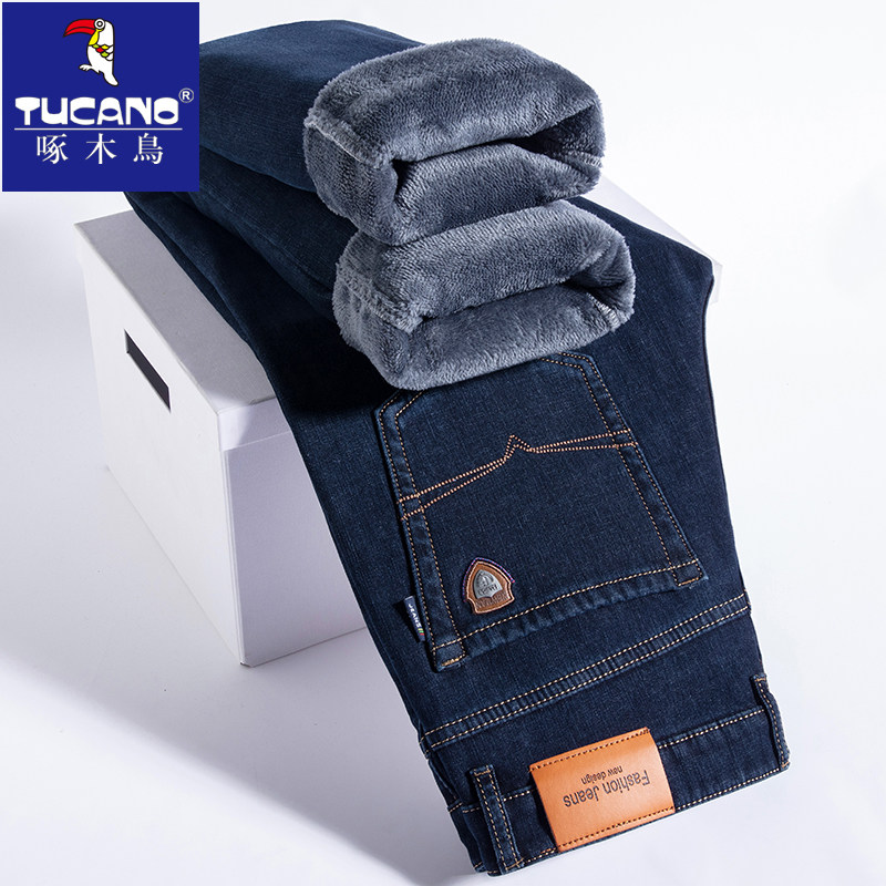 子 高端中年宽松直筒牛子男长裤 啄木鸟2025加绒加厚品牌牛仔裤 冬季