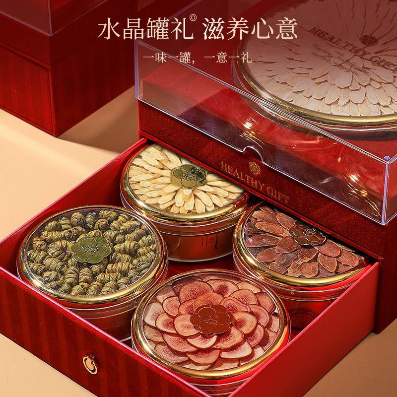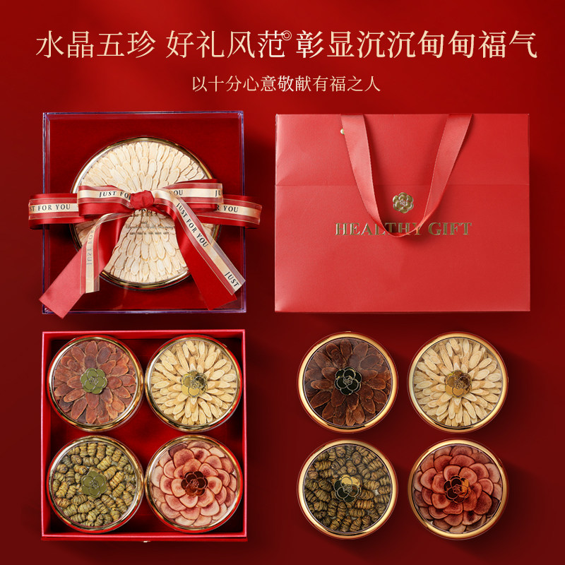 半山农红丝绒水晶五拼礼盒石斛红参鹿茸正品 年货节实用送礼西洋参