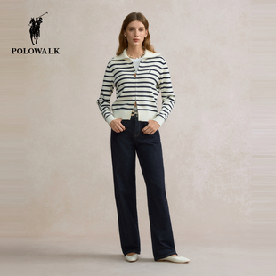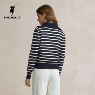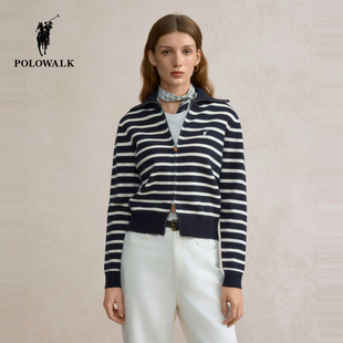 薄款 简系条纹针织衫 外套百搭上衣 秋冬新款 POLOWALK女士polo领开衫