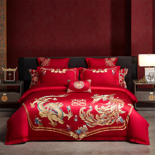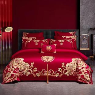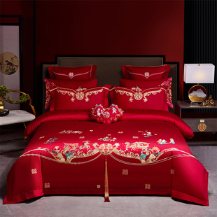 婚庆四件套全棉纯棉大红色床单被罩结婚床上用品喜被芯子陪嫁新婚