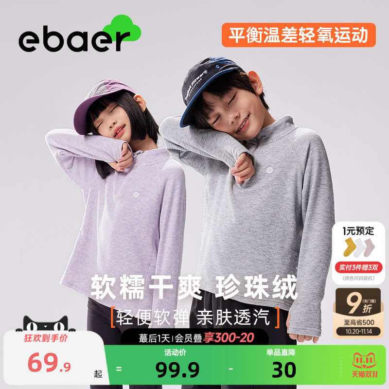 男女童加绒打底衫 EBAER儿童运动上衣2025秋冬新款 糯糯轻暖衣