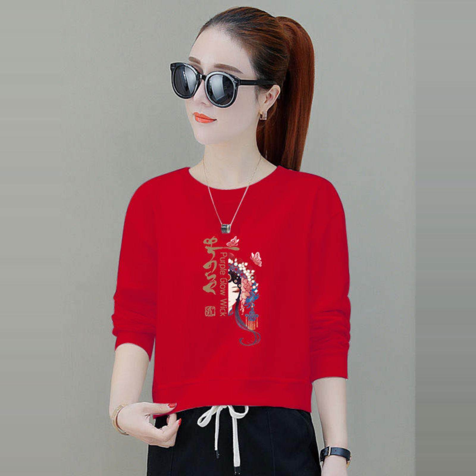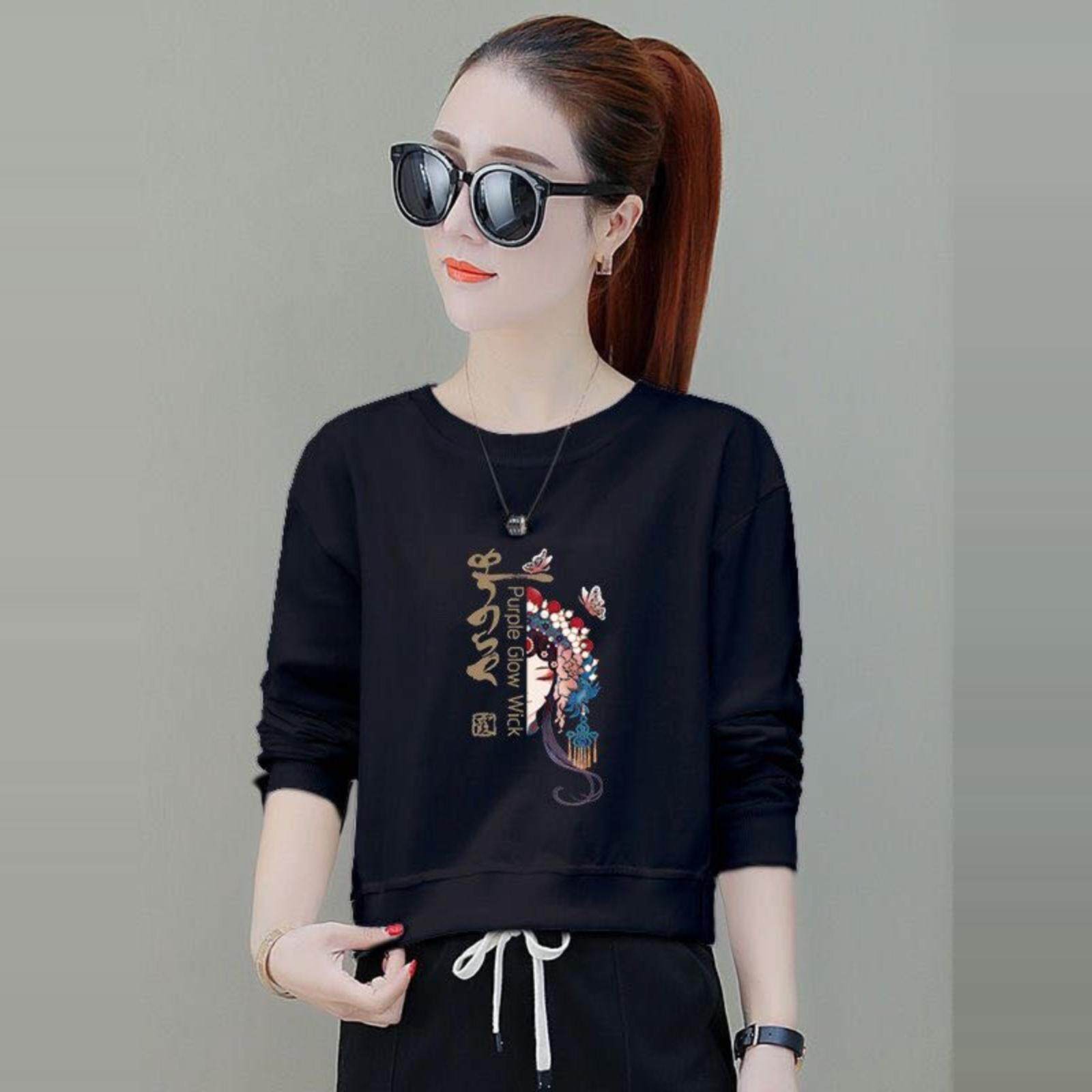 上衣长袖 宽松时尚 女 女短款 潮流圆领小个子高档卫衣2026春秋冬新款