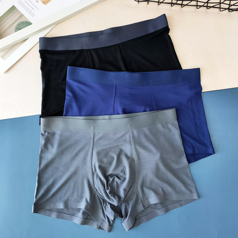 四角裤 夏薄中腰纯色柔软抑菌平角裤 朗奔莫代尔无痕男内裤 3条盒装