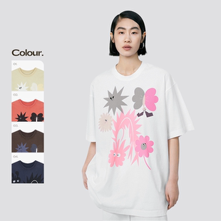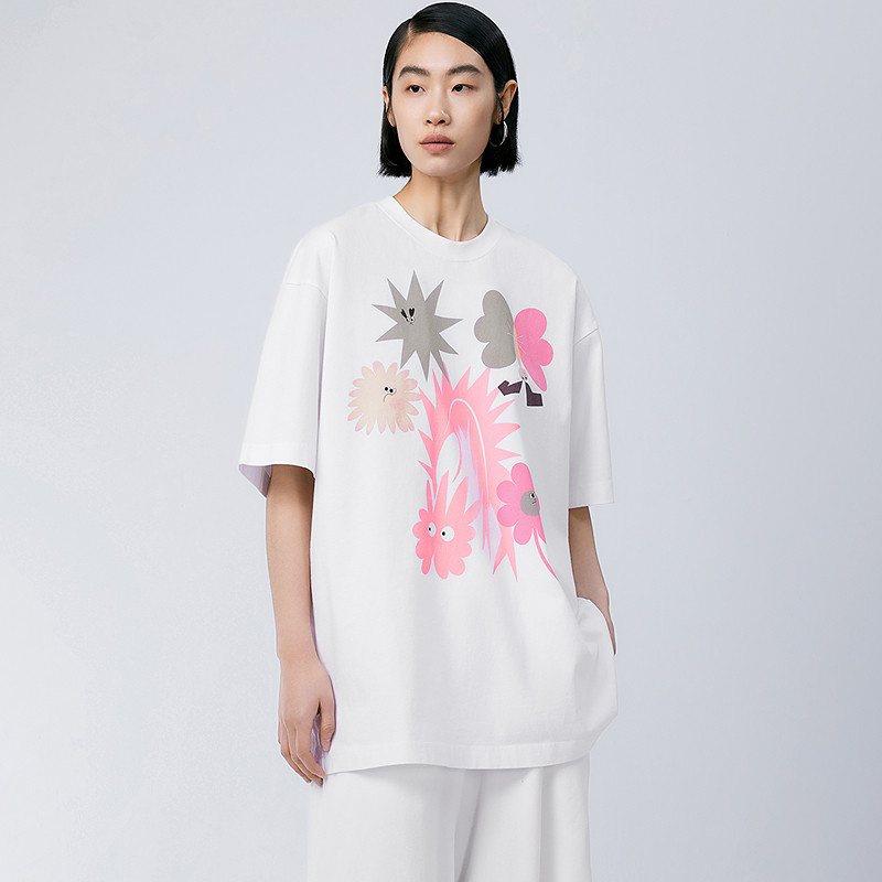 T恤宽松圆领舒适微弹趣味印花短袖 女装 上衣 江南布衣春夏季 JNBY