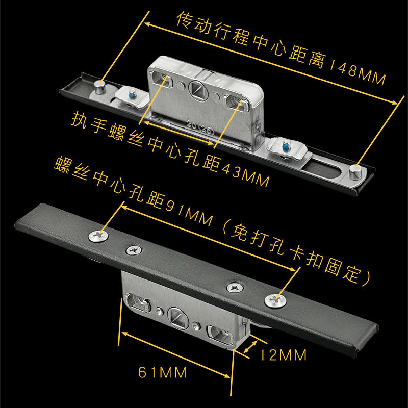 断桥铝窗户锁盒铝合金平开窗不锈钢锁芯纱窗锁扣联动把手锁传动器