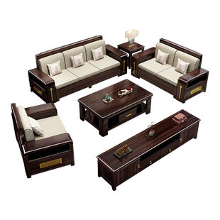新中式 家用高端实木沙发 北美黑胡桃木沙发现代简约客厅2025新款