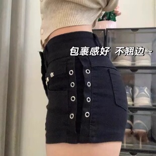 胖妹妹黑色柳丁美式 高腰紧身包臀热裤 超短牛仔裤 薄款 子 女夏季 大码