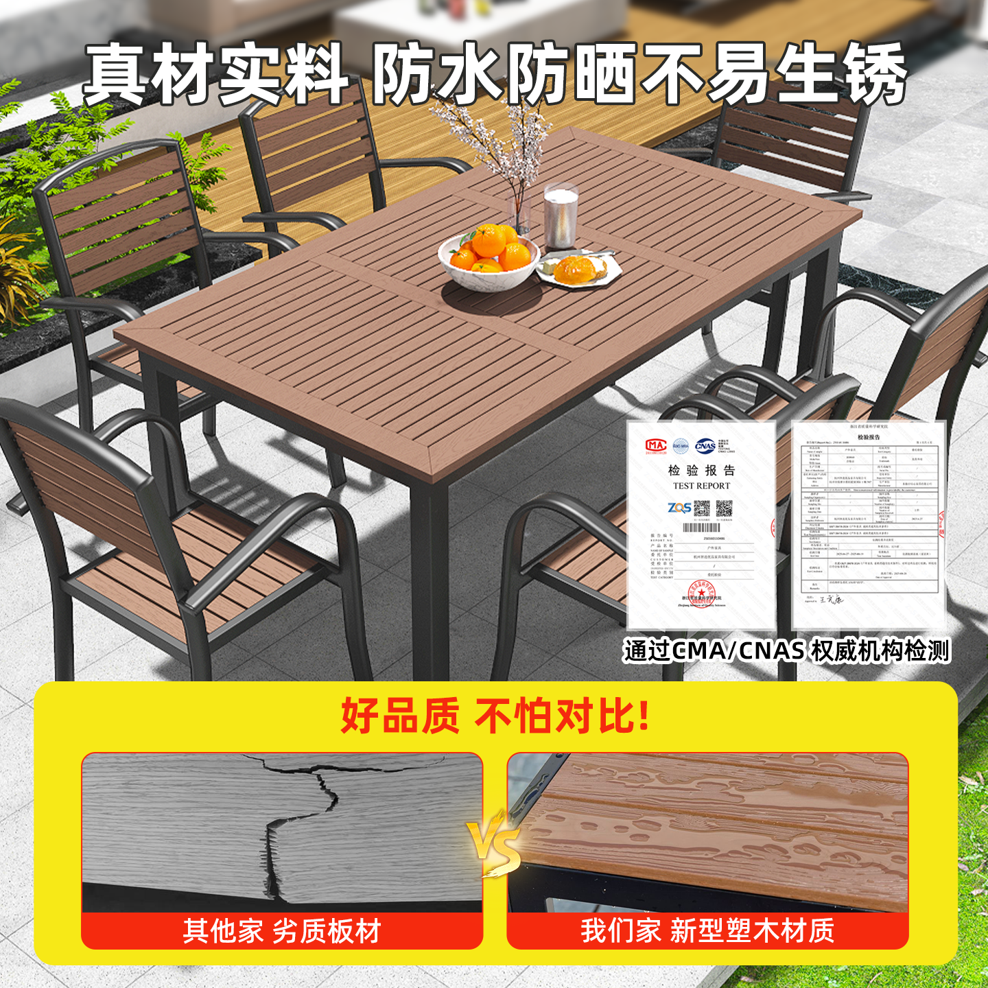 户外庭院桌椅室外防腐塑木餐桌椅套装 花园露天阳台休闲茶桌椅组合