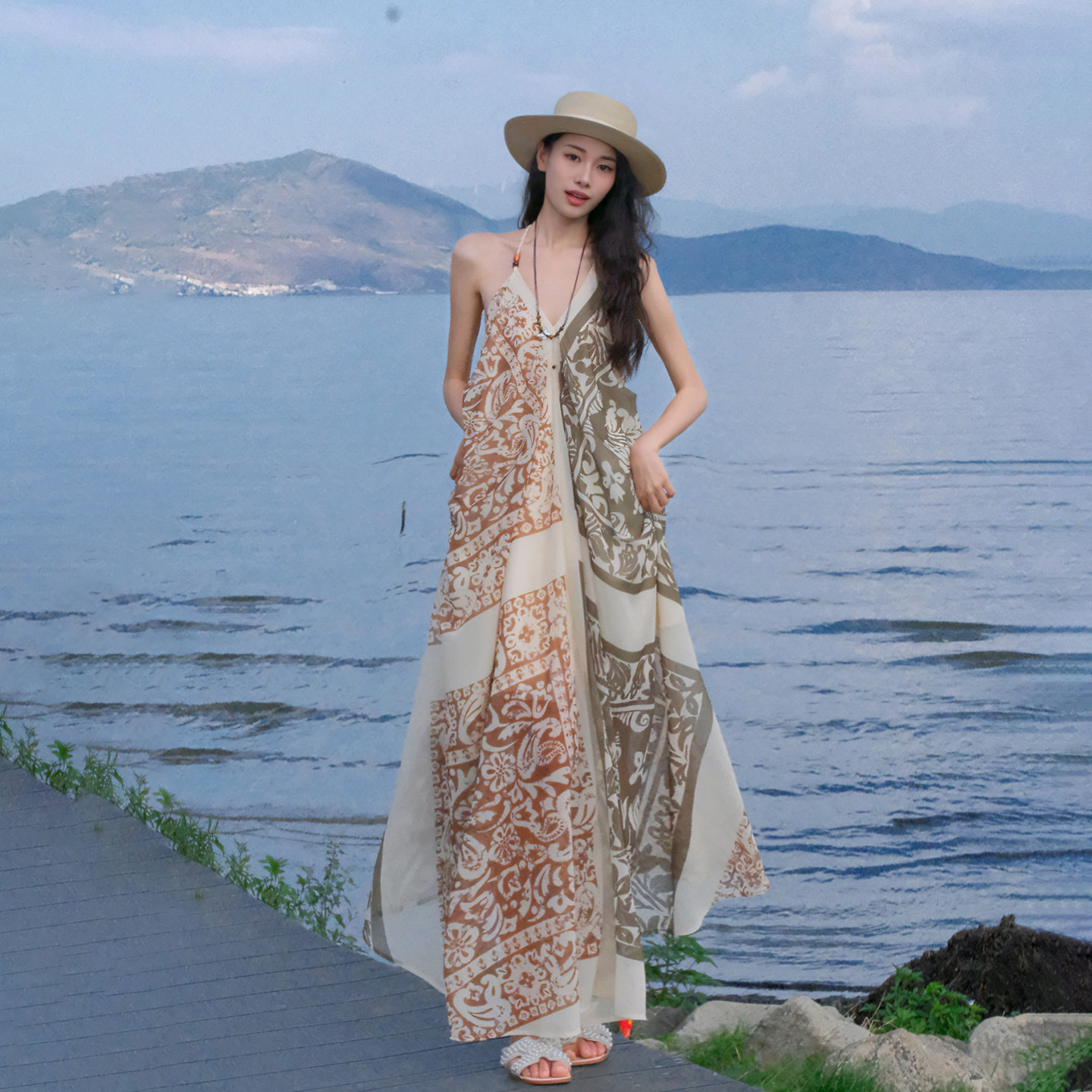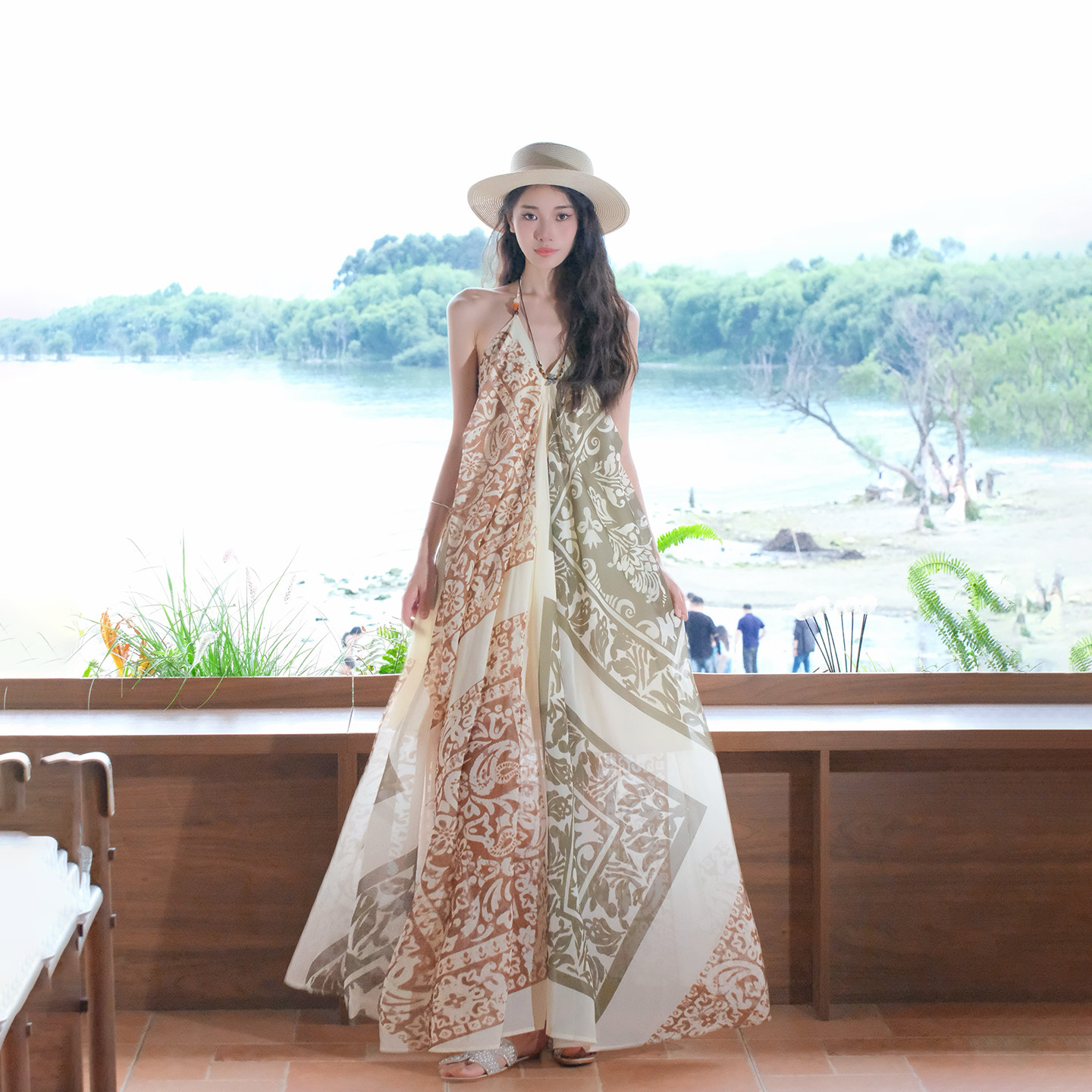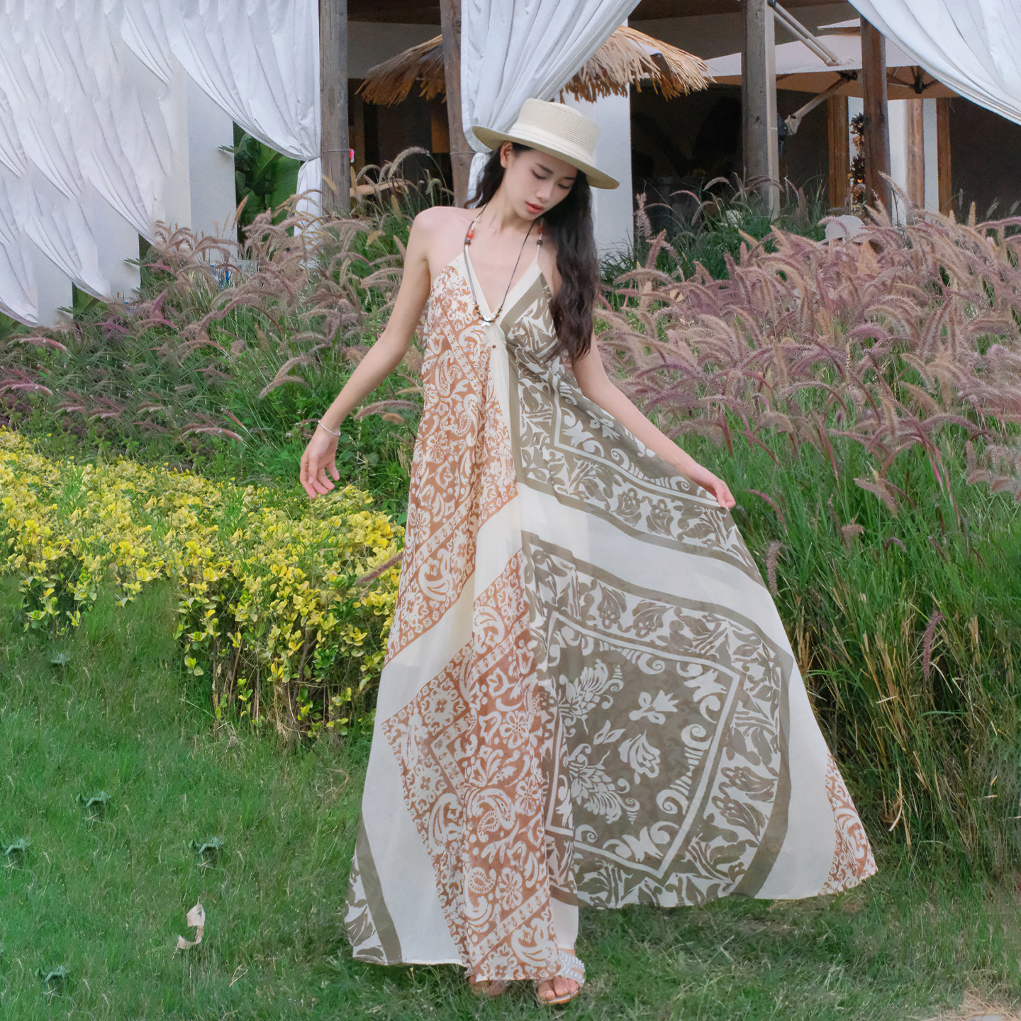 波西米亚宽松吊带连衣裙海边度假长裙三亚海边度假穿搭ootd沙滩裙