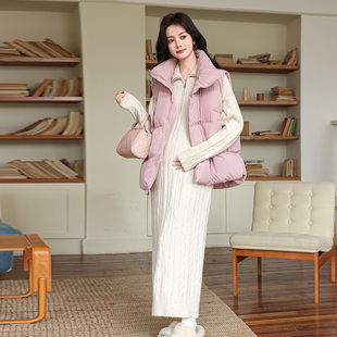 孕期孕妈高级穿搭 两穿领针织秋装 婧麒秋冬孕妇装 连衣裙子2025新款