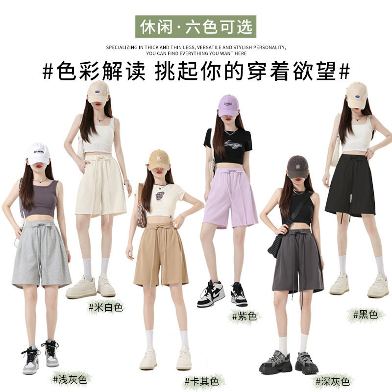 美式 小米妮运动短裤 宽松高腰显瘦休闲绑带阔腿裤 薄款 女夏季
