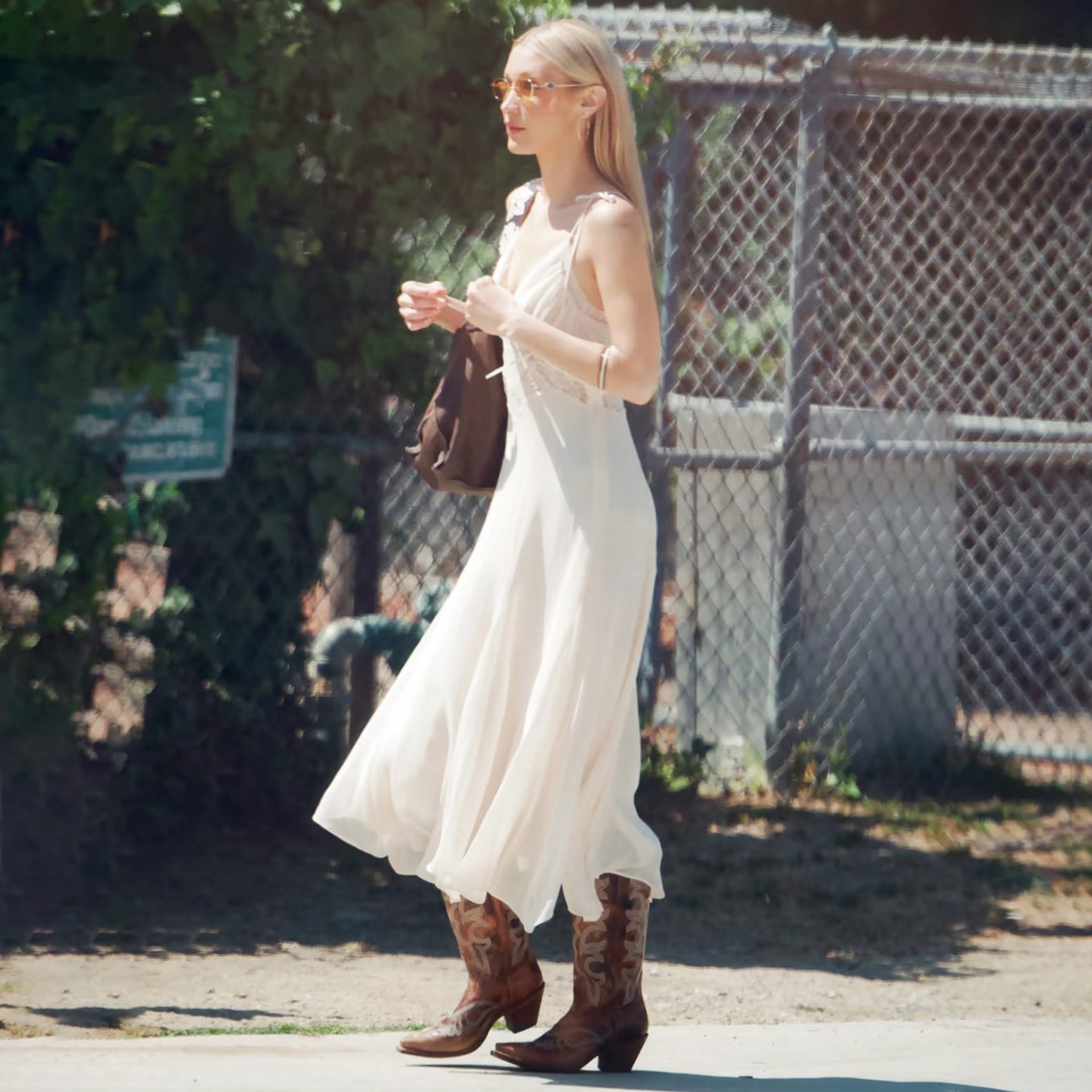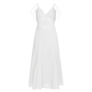 WEEKEEP 波西米亚度假风V领蕾丝拼接吊带连衣裙辣妹收腰A摆长裙