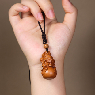 天然桃木葫芦吊坠男女款 项链挂件吉祥物钥匙扣挂饰手捻福禄小礼物