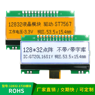 橙底黑字 12832 ST7567驱动点阵 10P插接 cog显示模块 1720液晶屏