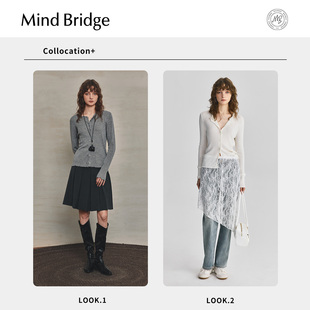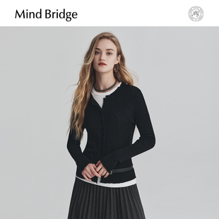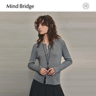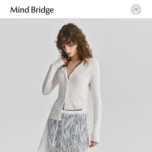 Bridge 女士时尚 绵羊毛 开衫 毛衣 2025秋纯色花边针织法式 Mind