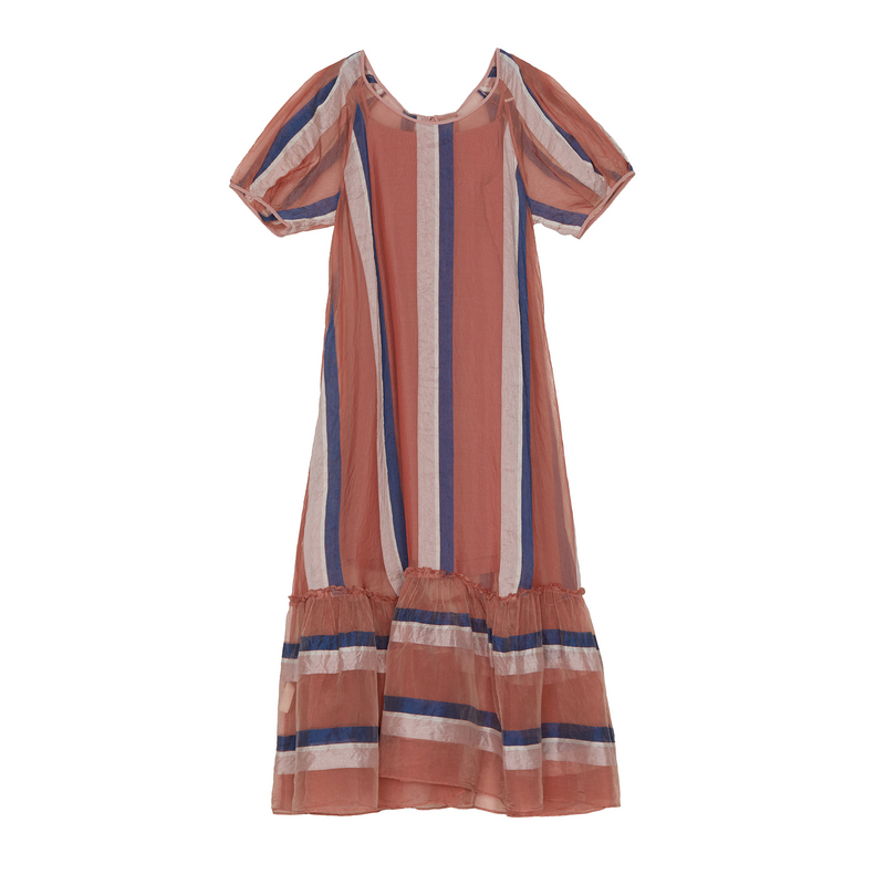 243GL1173 条纹撞色A型长裙短袖 谜底100%桑蚕丝连衣裙2024秋季 新品