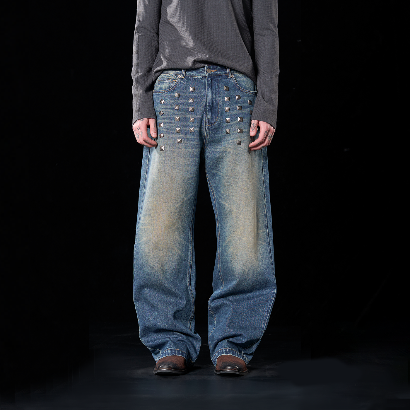 子男款 美式 微喇蓝牛裤 男cleanfit高街直筒修身 复古蓝色水洗牛仔裤