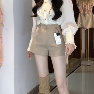 短裤 宽松百搭a字热裤 女大码 秋季 胖mm休闲阔腿裤 老钱风卡其色西装