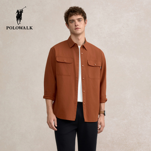 2025秋季 衬衫 新品 翻领复古工装 POLOWALK男装 风通勤衬衣男式 长袖