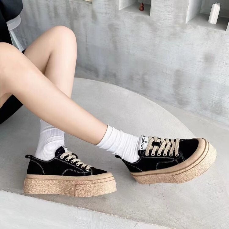 厚底运动休闲板鞋 真皮帆布鞋 潮欧货松糕爆款 夏季 女2025新款