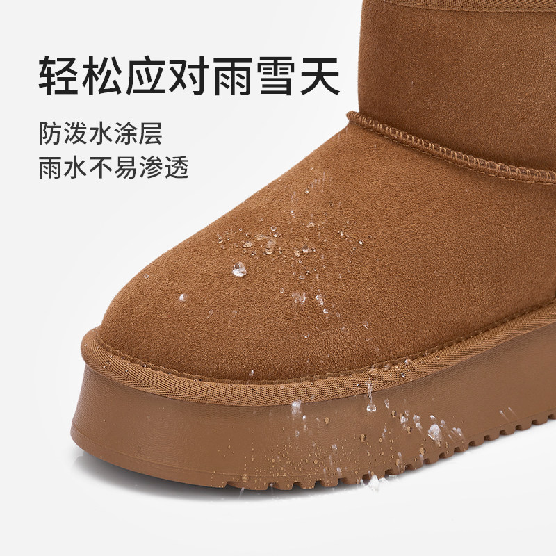 热风厚底雪地靴女2025年冬季 加绒保暖短筒靴小个子增高女靴子 新款