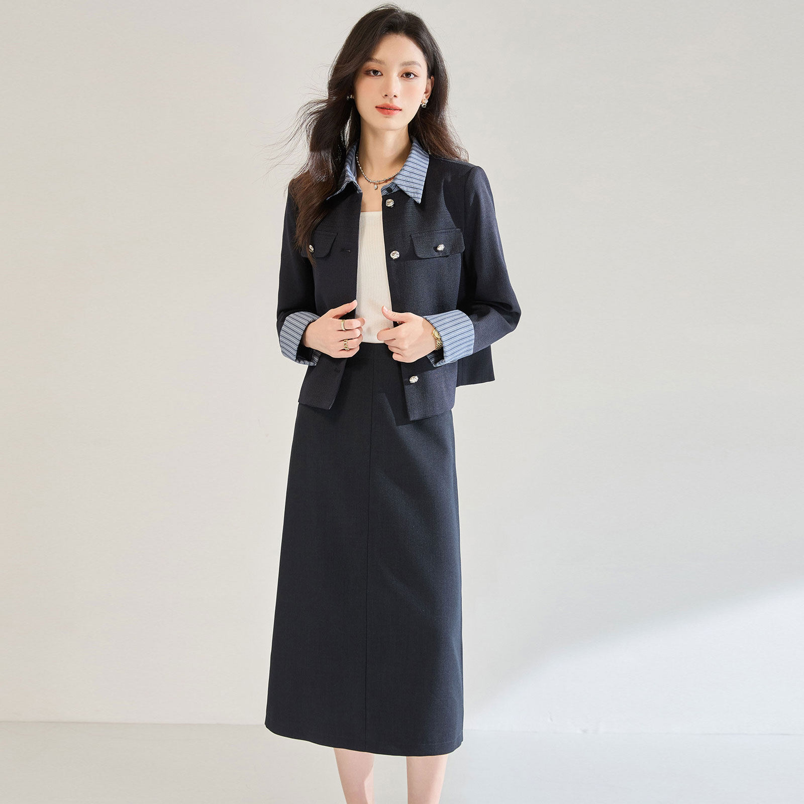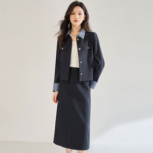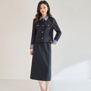 两件套装 时尚 裙女高级感条纹拼接小西服显瘦半身裙 新款 迪奥25秋季