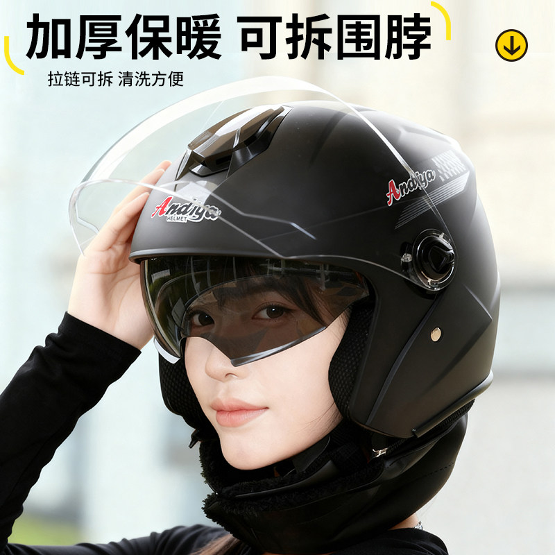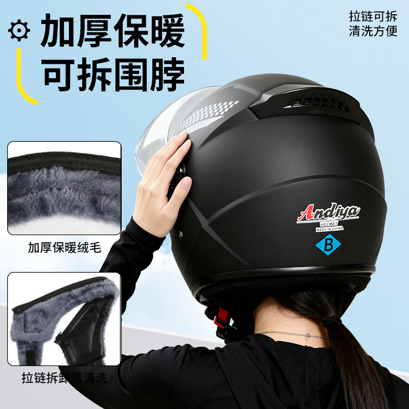 电动车头盔男女3C认证冬季 通用电瓶车安全帽 防寒保暖可拆围脖四季