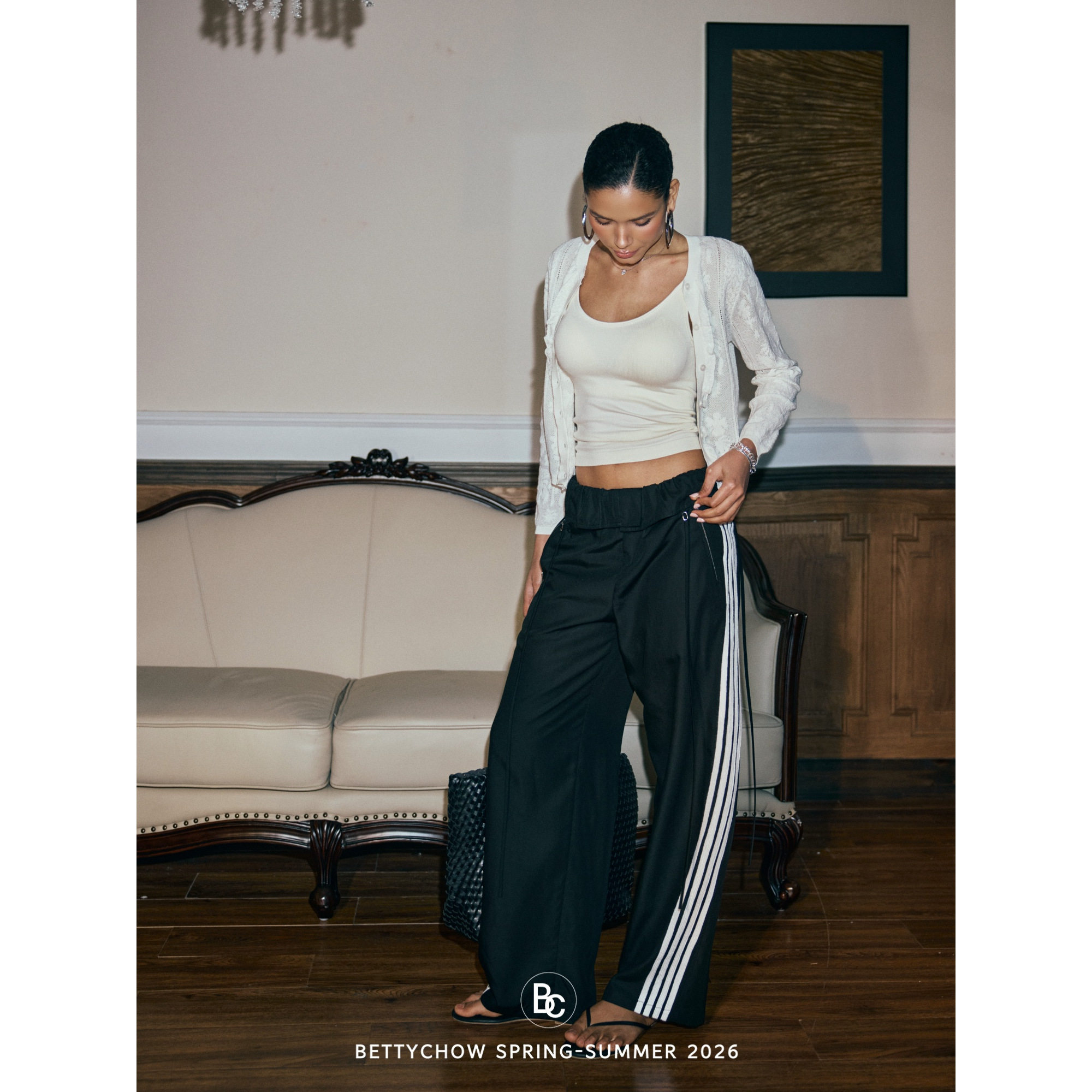 休闲裤 黑色深蓝色通勤百搭时尚 天丝春夏薄条纹阔腿裤 Bettychow