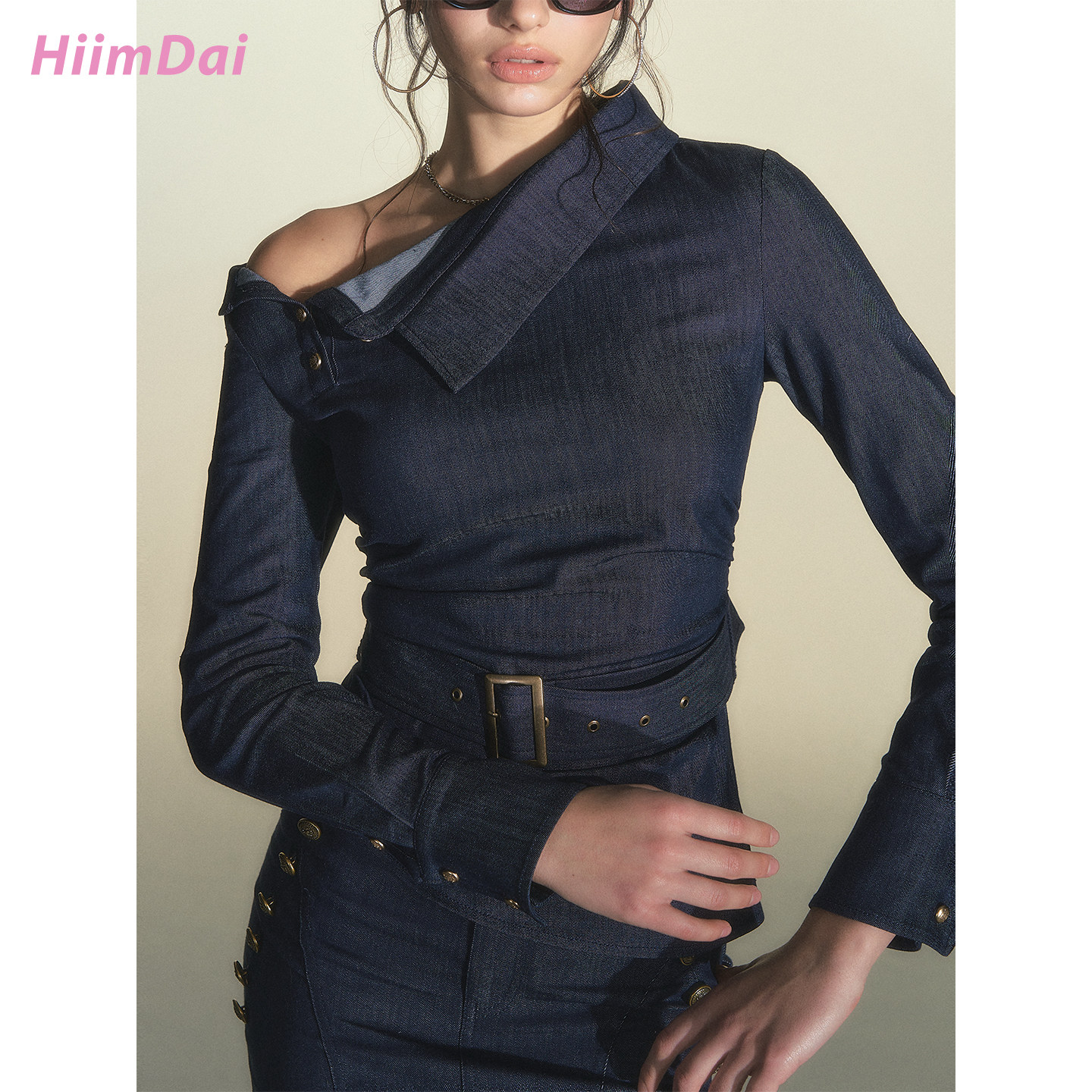 &包臀鱼尾半裙套装 设计感解构褶皱收腰斜肩衬衫 京都日记 HiimDai