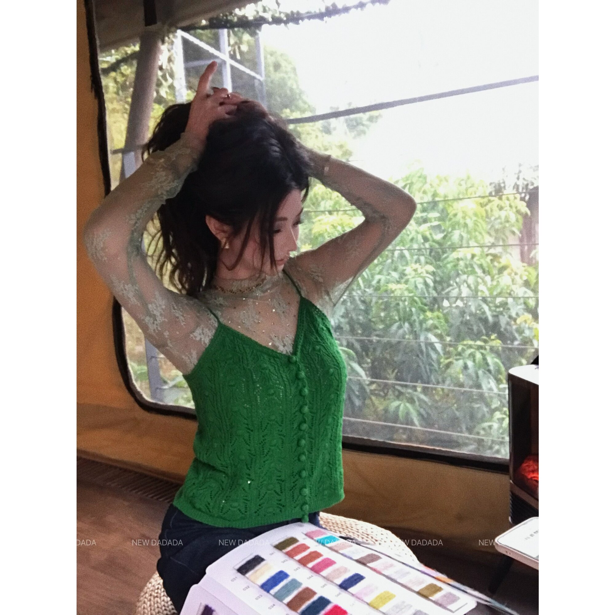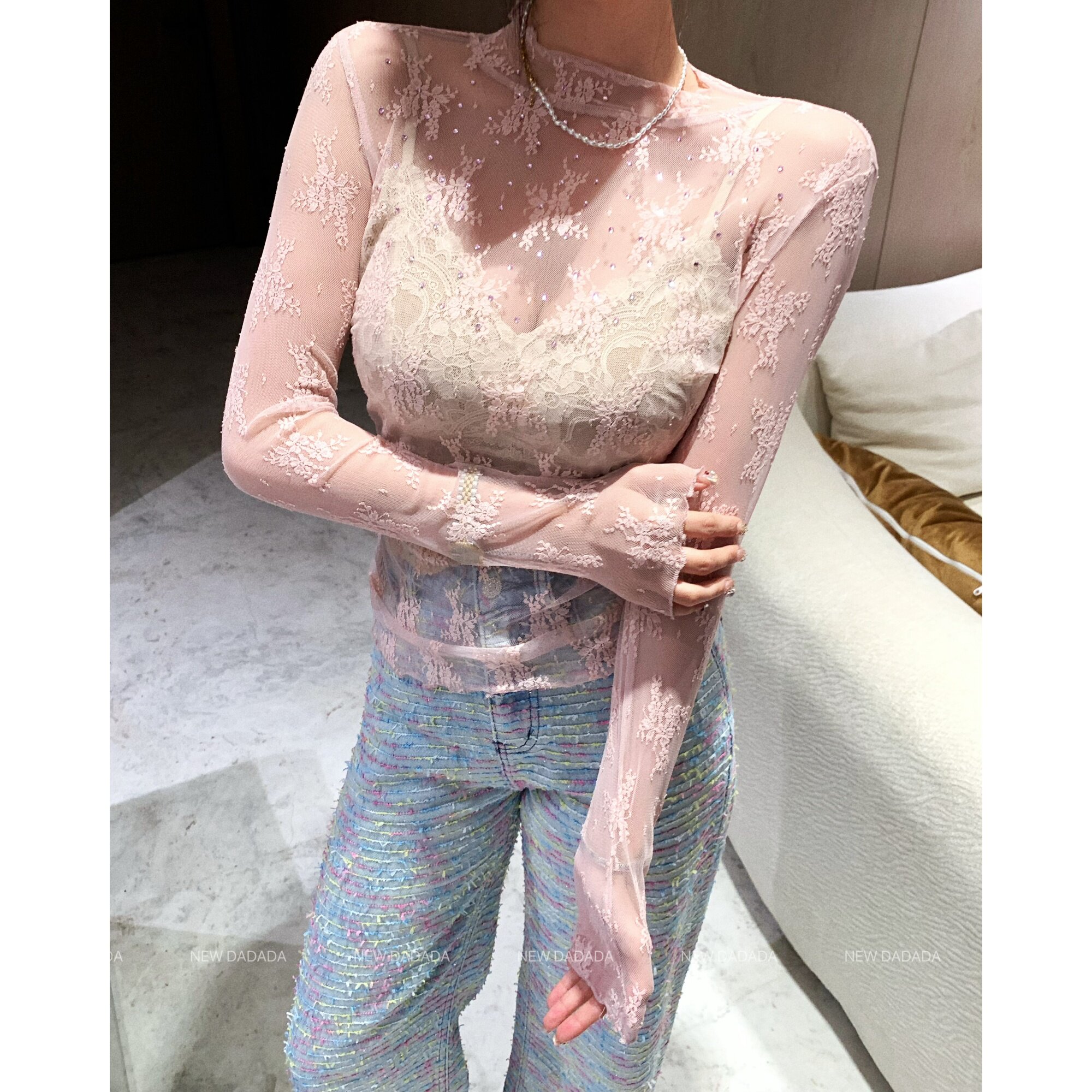 流行爆款 利达NEWDADADA 新款 打底衫 外穿蕾丝 闪钻花花蕾丝打底