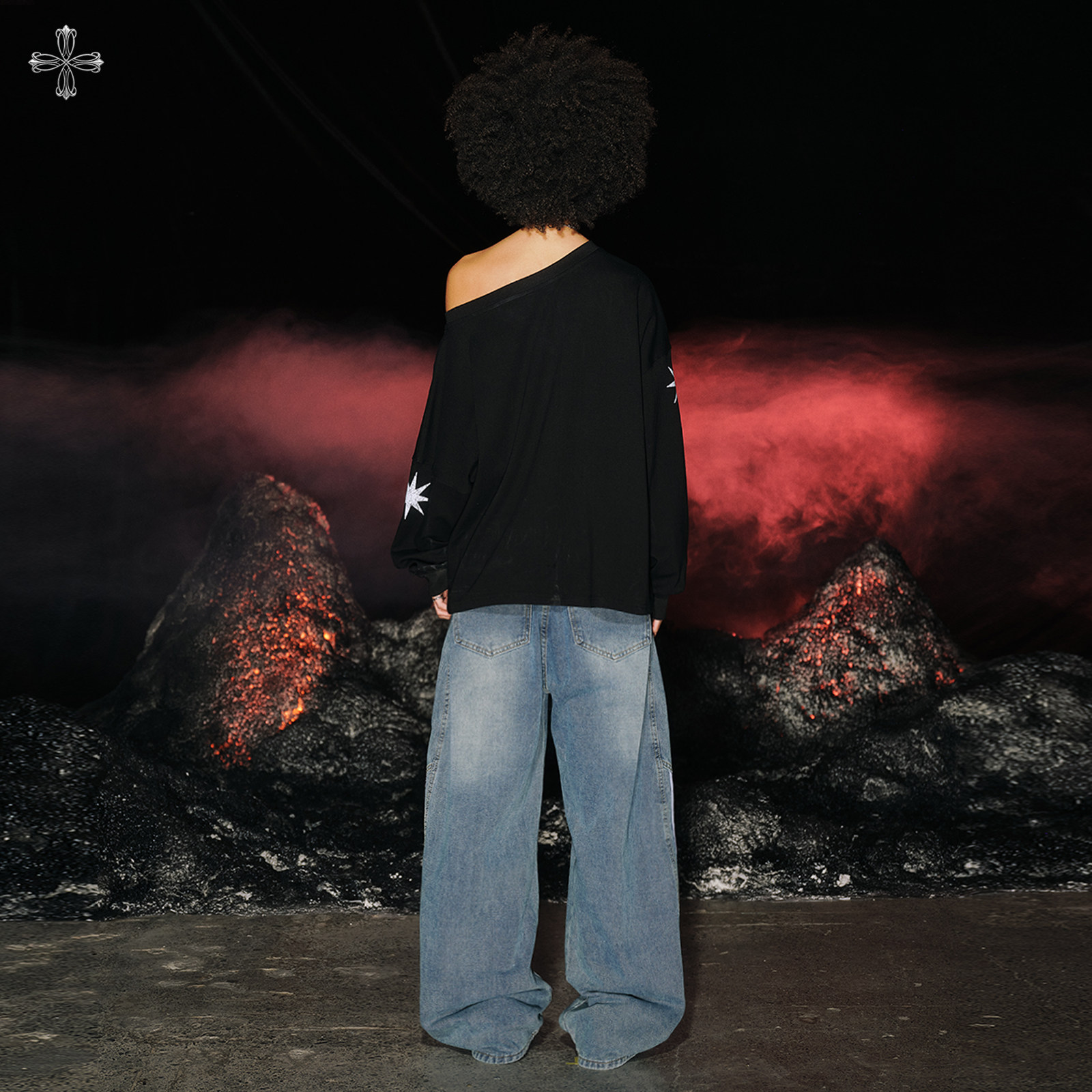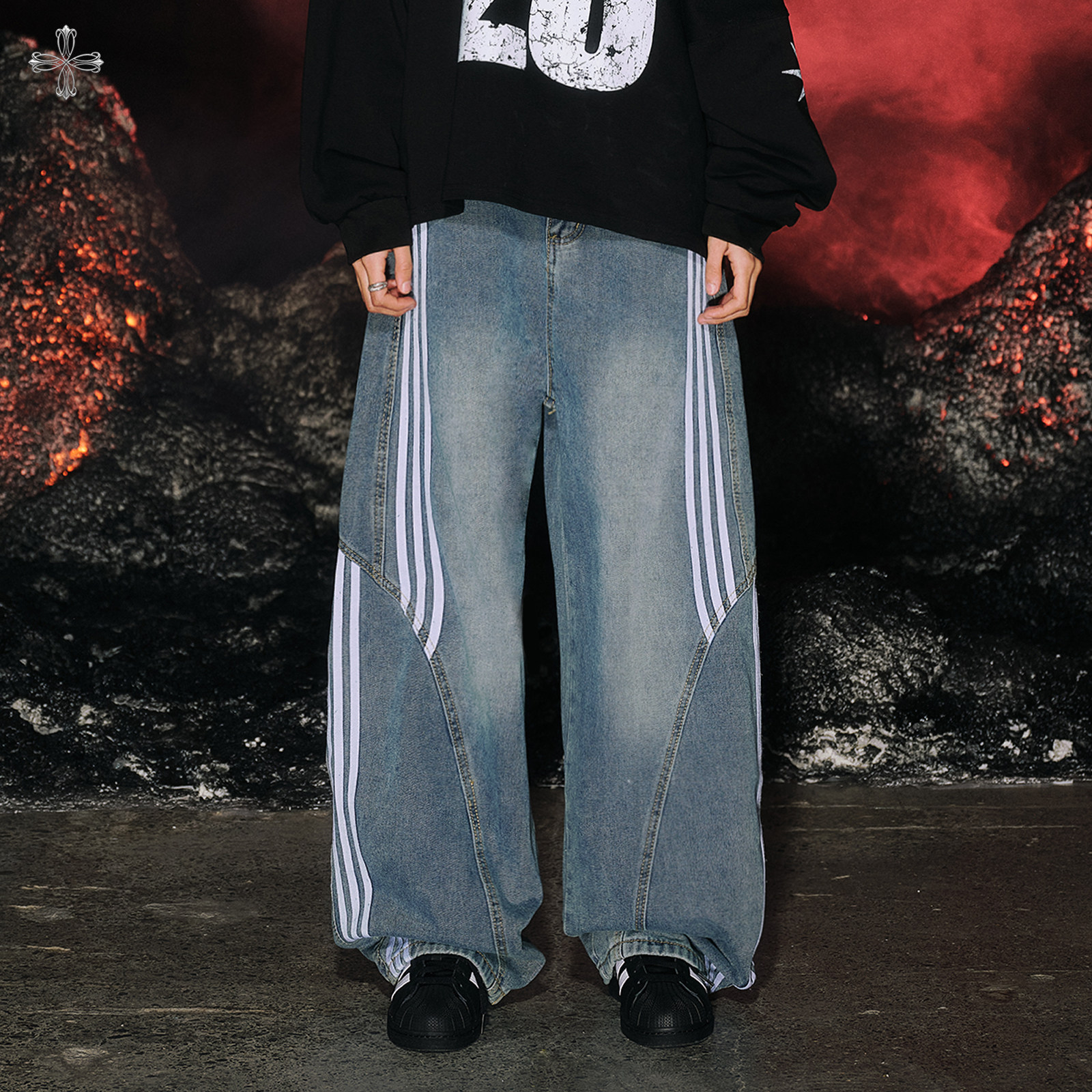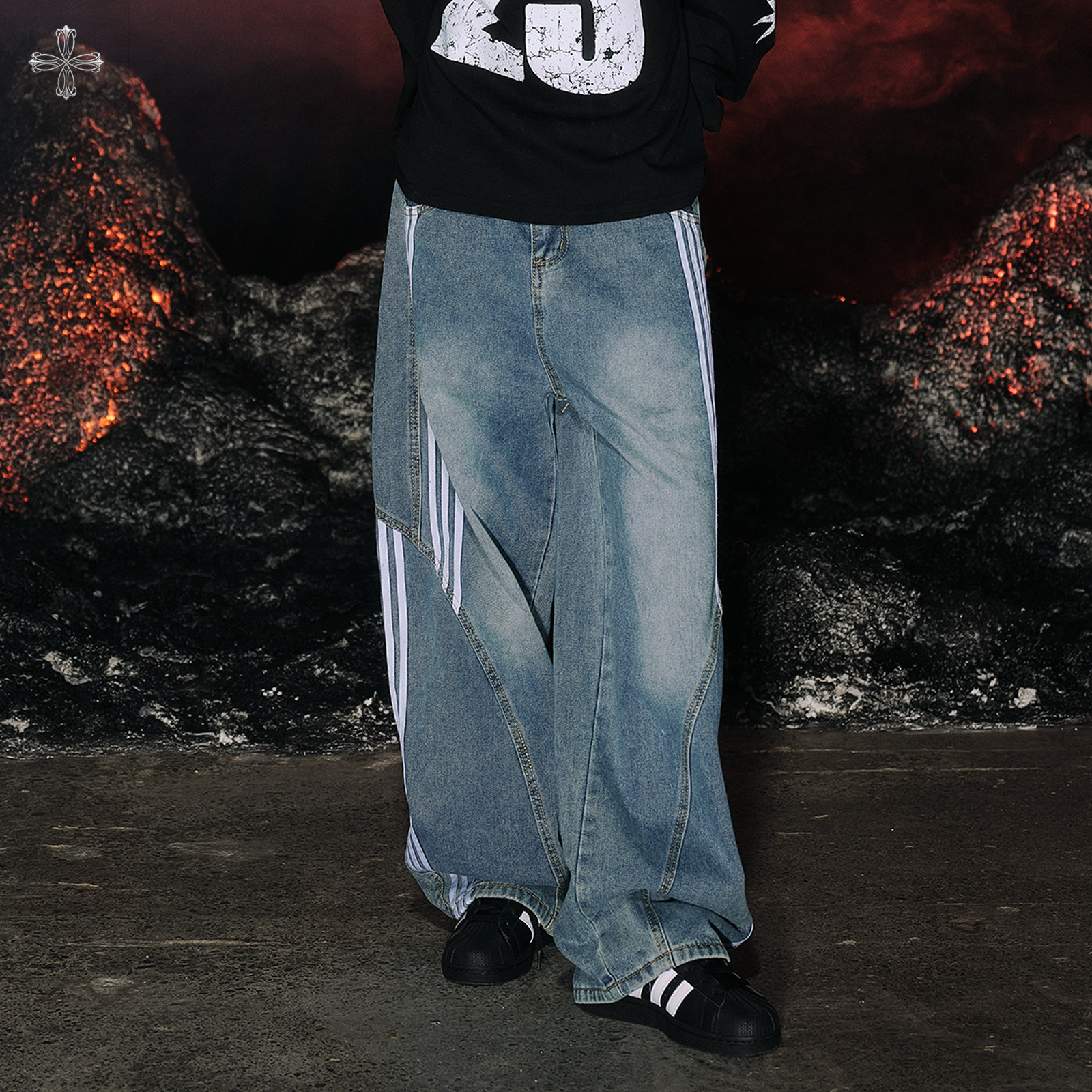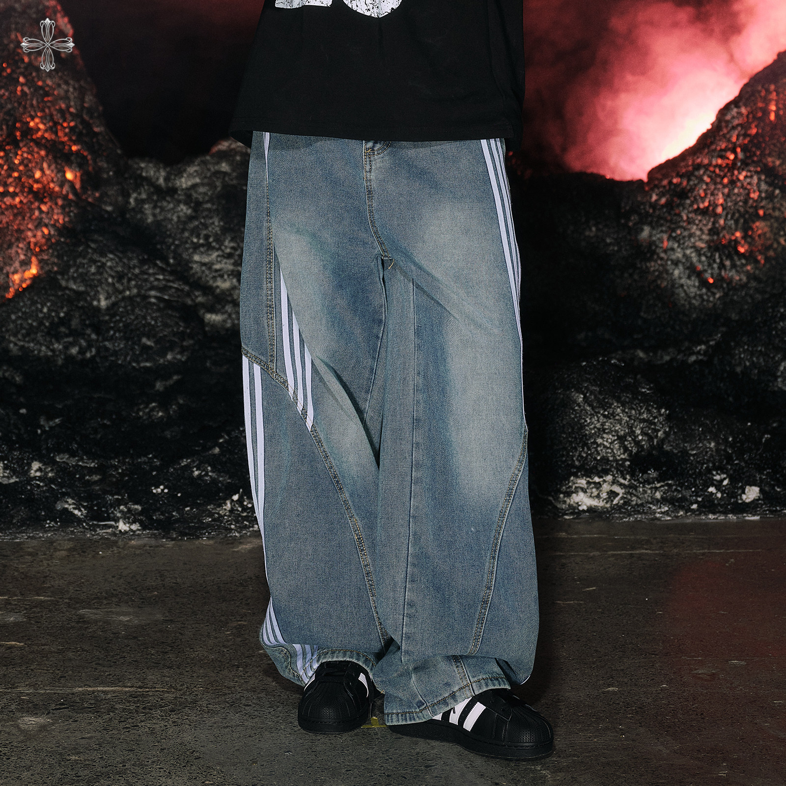 街头辣妹女长裤 SMILEDDD 弯刀阔腿显瘦美式 三杠分割牛仔裤 月石